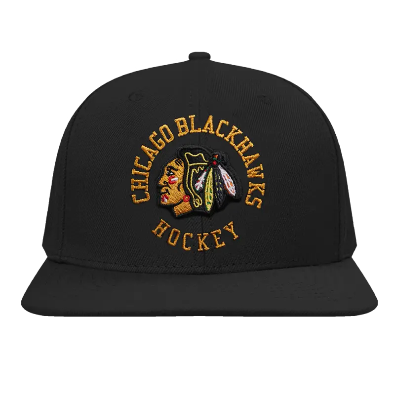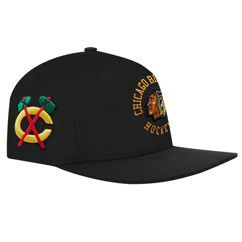 NHL CHICAGO BLACKHAWKS BLACK \u0026 GOLD WOOL SNAPBACK HAT (BLACK)
