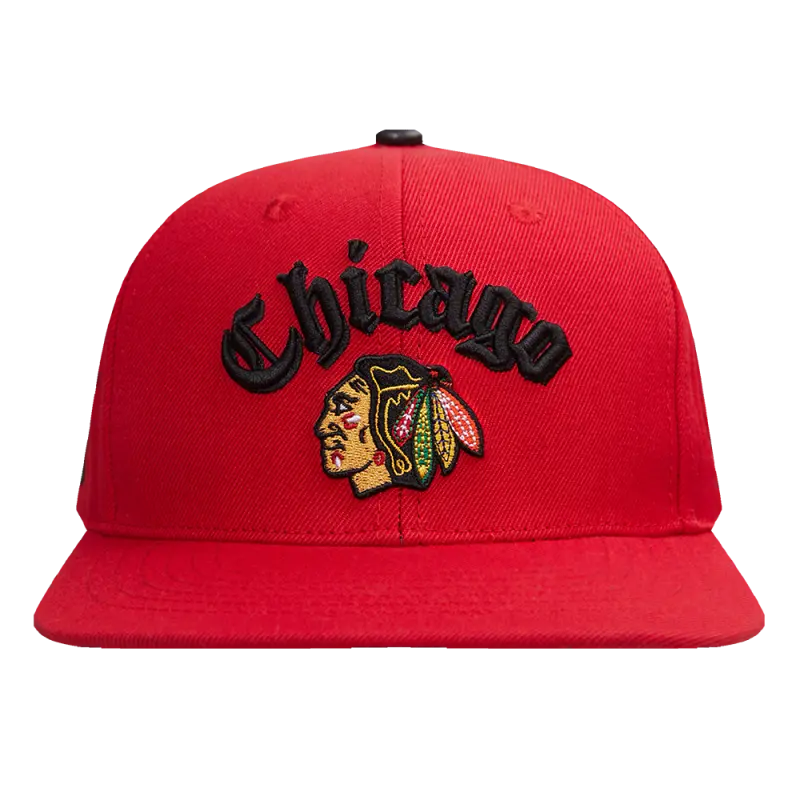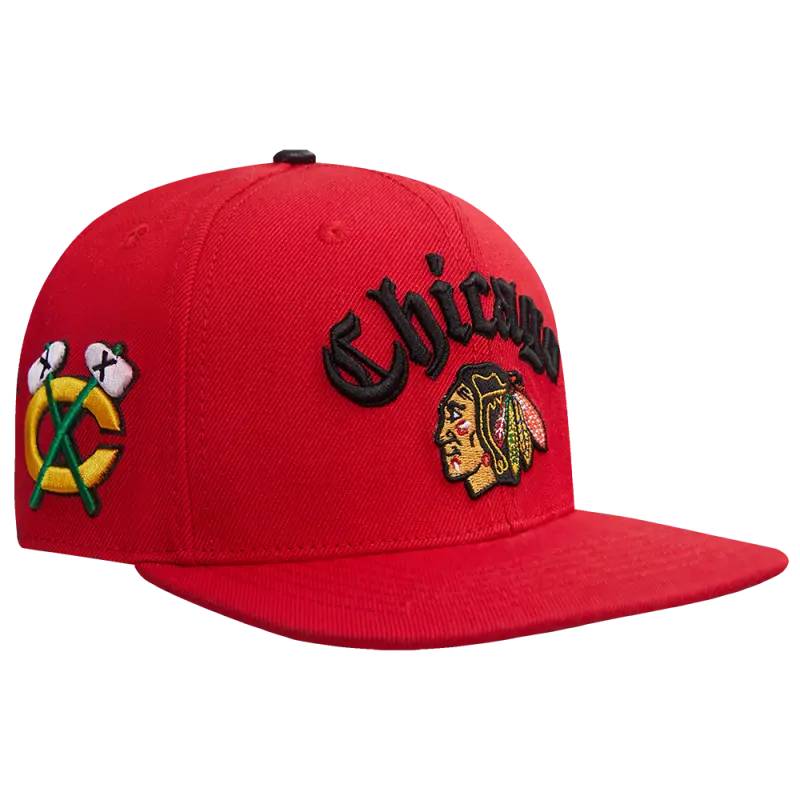 NHL CHICAGO BLACKHAWKS OLD ENGLISH UNISEX 6 PANEL SNAPBACK HAT (RED)