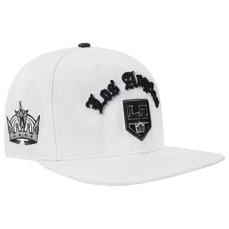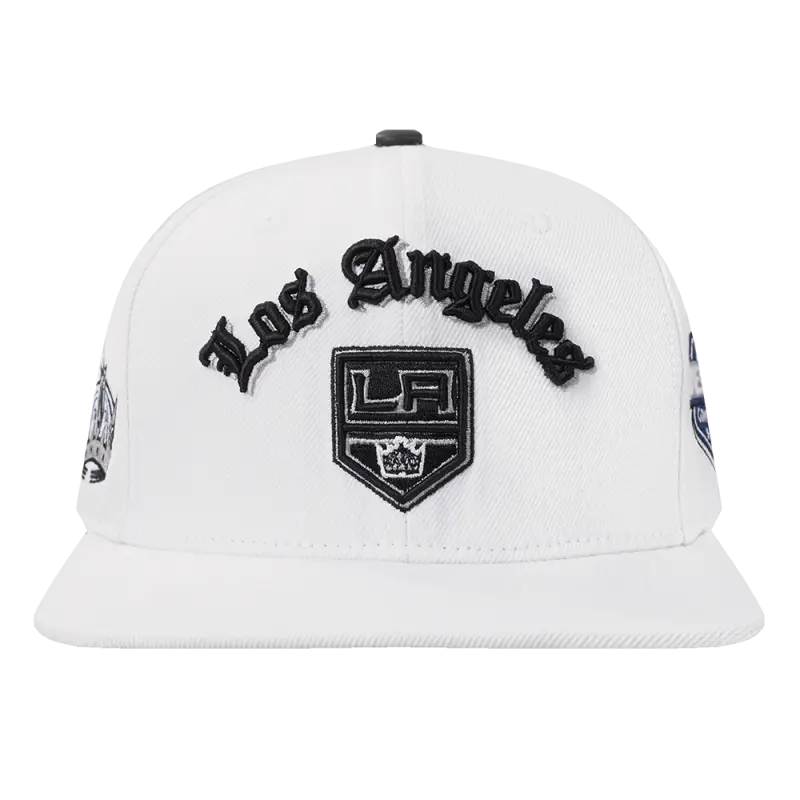 NHL LOS ANGELES KINGS OLD ENGLISH UNISEX 6 PANEL SNAPBACK HAT (WHITE)