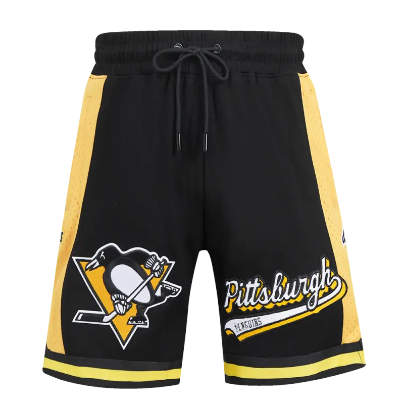 NHL PITTSBURGH PENGUINS SCRIPT TAIL MEN’S DOUBLE KNIT 2.0 SHORT (BLACK\/YELLOW)