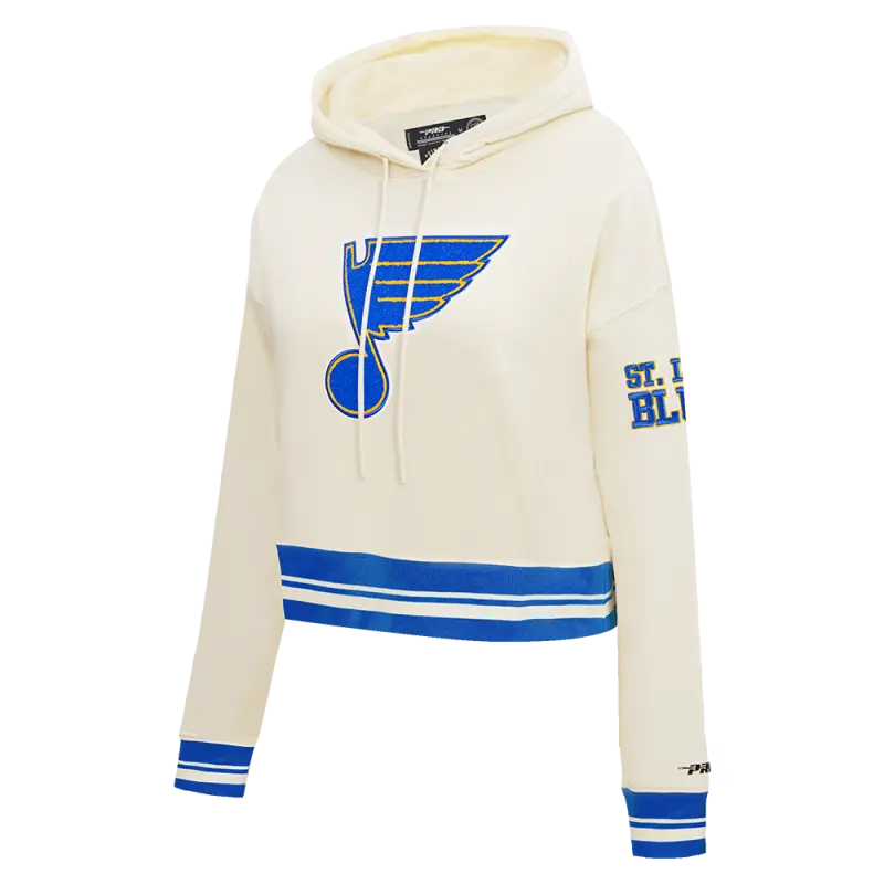 NHL ST. LOUIS BLUES RETRO CLASSIC WOMEN’S RIB CROPPED PO HOODIE (EGGSHELL\/ROYAL BLUE)