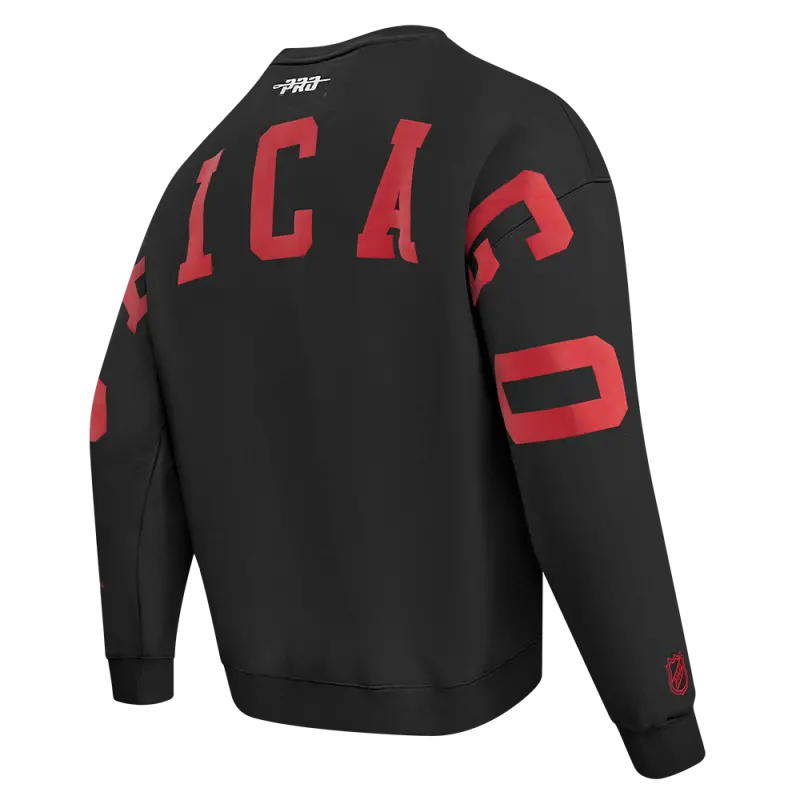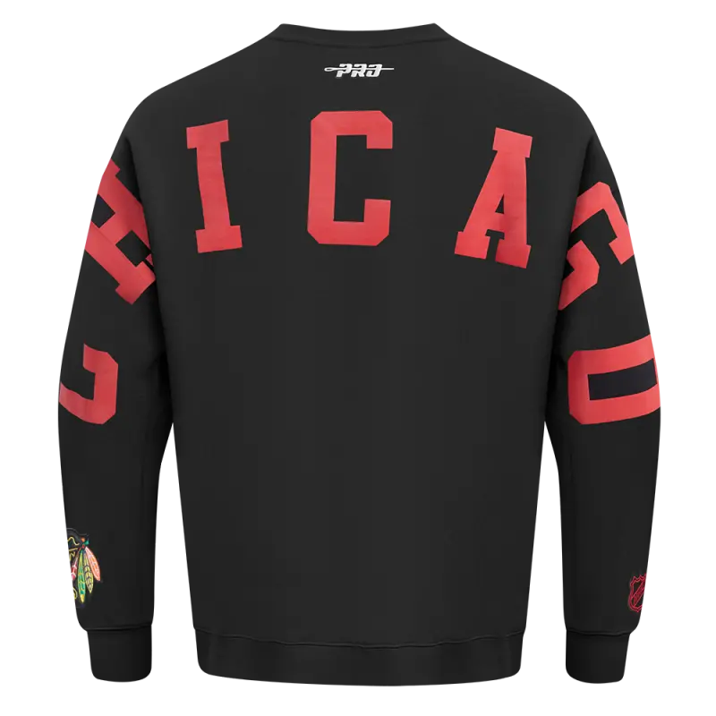 NHL CHICAGO BLACKHAWKS WINGSPAN MEN’S DROP SHOULDER FLEECE CREWNECK (BLACK)