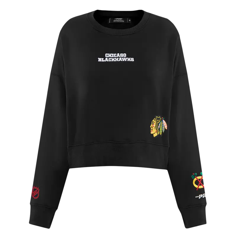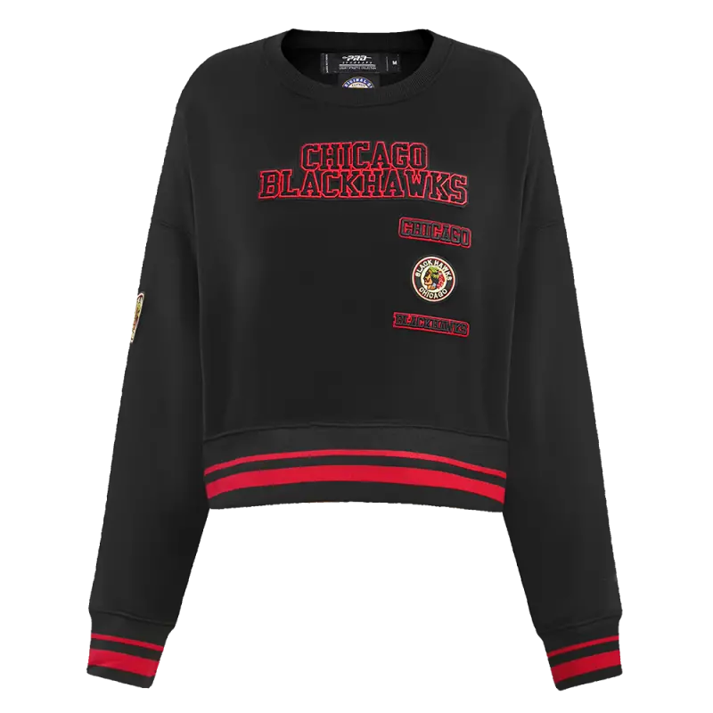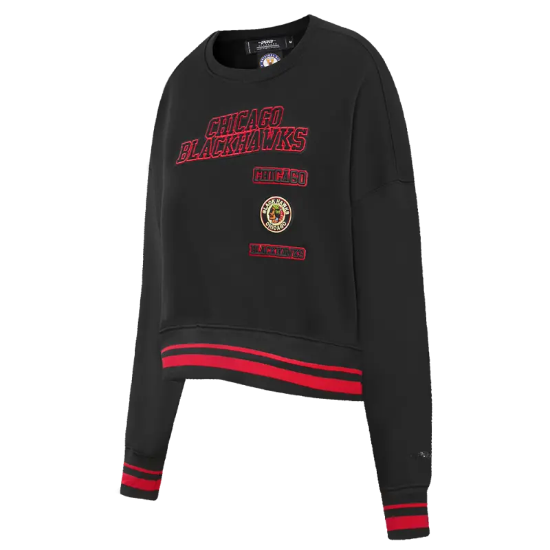 NHL CHICAGO BLACKHAWKS RETRO CLASSIC WOMEN’S RIB CREWNECK (BLACK\/RED\/BLACK)