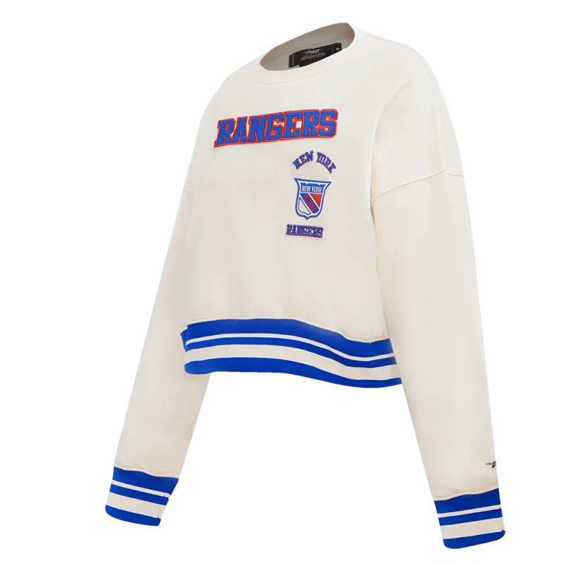 NHL NEW YORK RANGERS RETRO CLASSIC WOMEN’S RIB CREWNECK (EGGSHELL\/ROYAL BLUE)