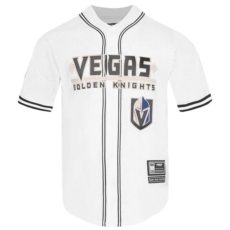 NHL VEGAS GOLDEN KNIGHTS CLASSIC MEN’S MESH BUTTON DOWN JERSEY (WHITE \/ BLACK \/ WHTE)