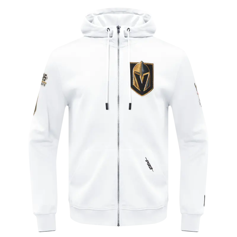 NHL VEGAS GOLDEN KNIGHTS CLASSIC CHENILLE MEN’S FULL ZIP PULLOVER HOODIE (WHITE)
