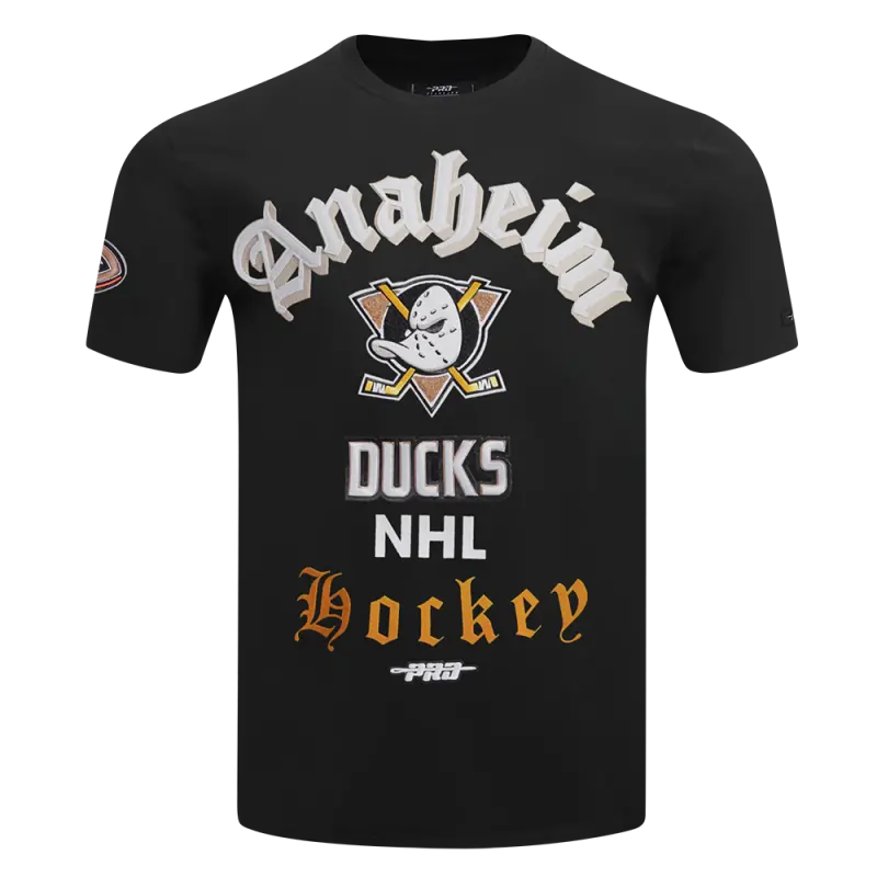 The Pro Standard Premium NHL Anaheim Ducks Old English Men’s Tee (Black)