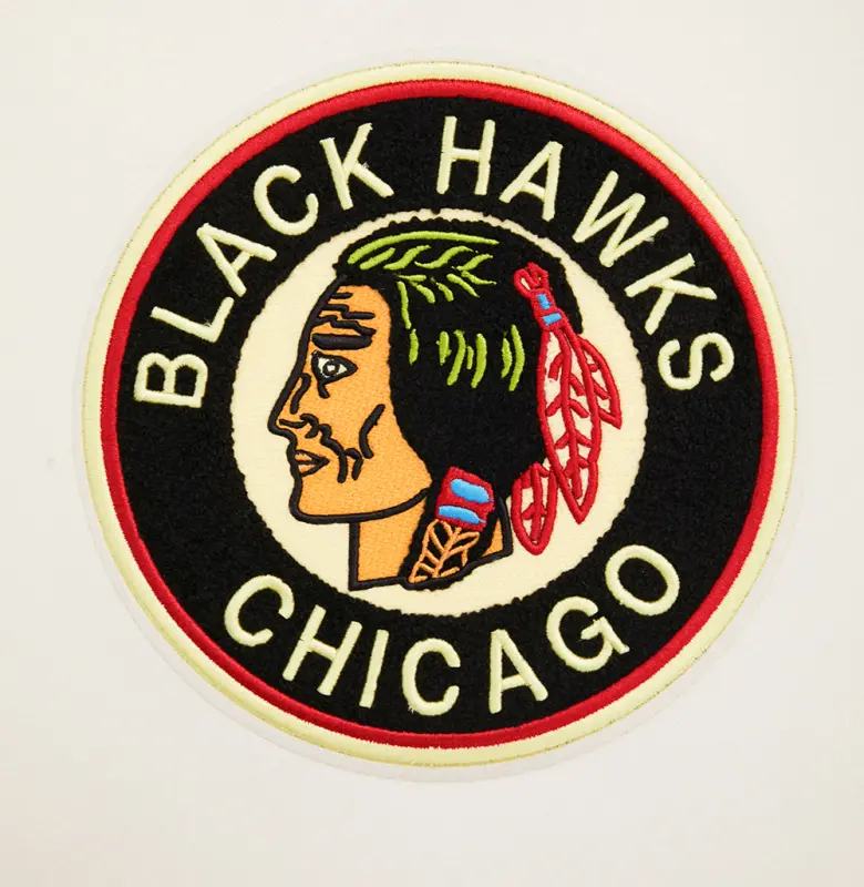 NHL CHICAGO BLACKHAWKS RETRO CLASSIC WOMEN’S RIB CROPPED PULLOVER HOODIE (EGGSHELL\/ BLACK)