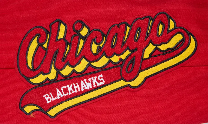 Home / Shop / PANTS / NHL CHICAGO BLACKHAWKS SCRIPT TAIL MEN’S RIB FLEECE SWEATPANT (RED\/BLACK)