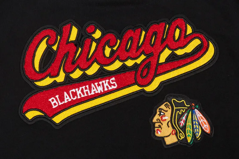 Home / Shop / SWEATSHIRTS / NHL CHICAGO BLACKHAWKS SCRIPT TAIL WOMEN’S RIB FLEECE CROPPED PULLOVER HOODIE (BLACK\/RED\/BLACK)