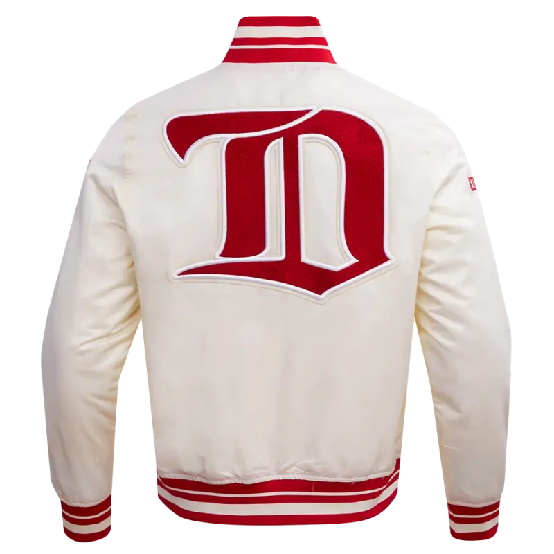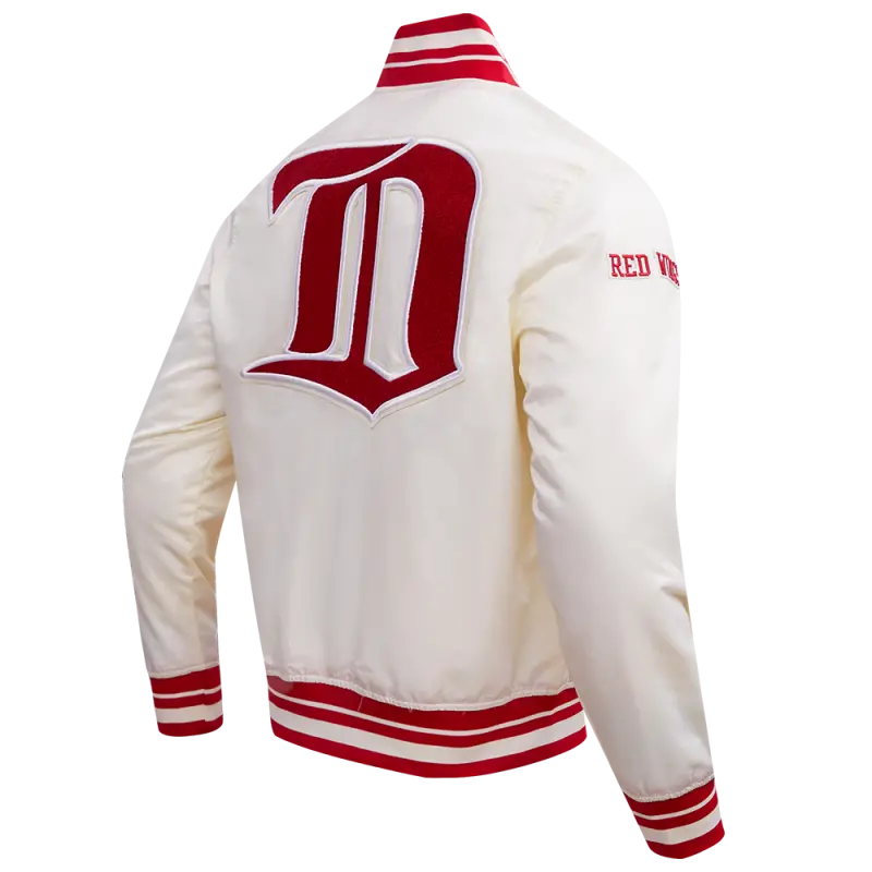 NHL DETROIT RED WINGS RETRO CLASSIC MEN’S RIB SATIN JACKET (EGGSHELL\/ RED)