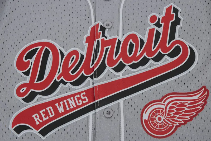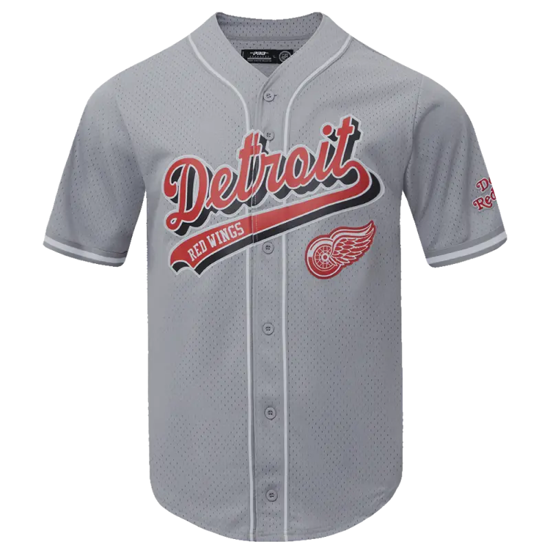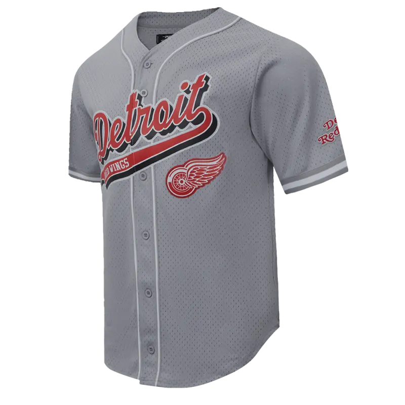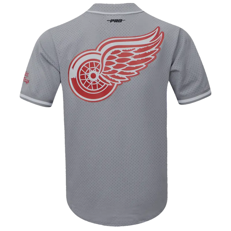 NHL DETROIT RED WINGS SCRIPT TAIL MEN’S MESH BUTTON DOWN SHIRT (GRAY)