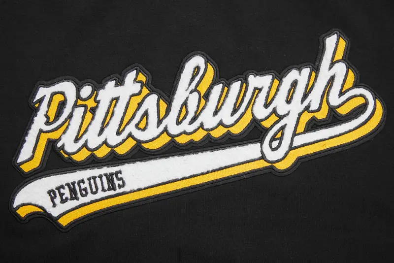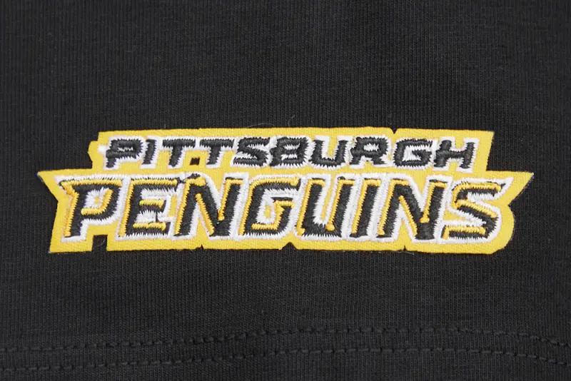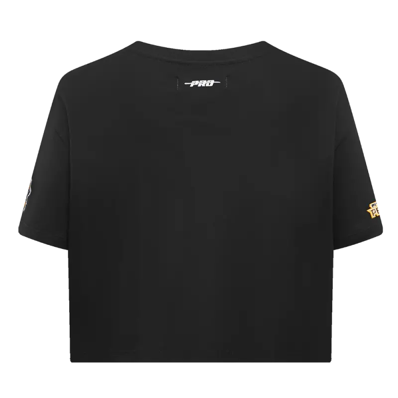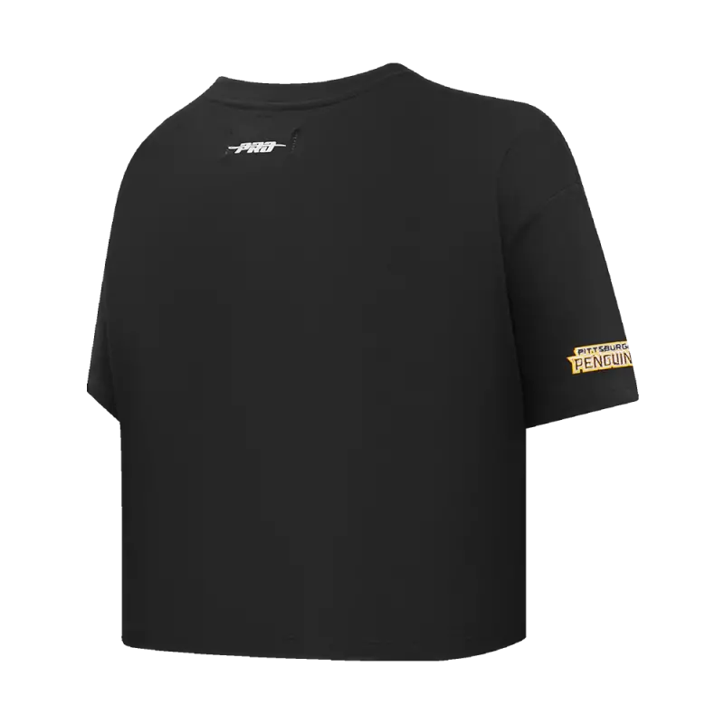 NHL PITTSBURGH PENGUINS SCRIPT TAIL WOMEN’S SINGLE JERSEY BOXY TEE (BLACK)
