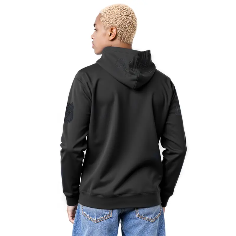 NHL VEGAS GOLDEN KNIGHTS BLACKOUT MEN’S DROP SHOULDER FLC PO HOODIE (BLACK)